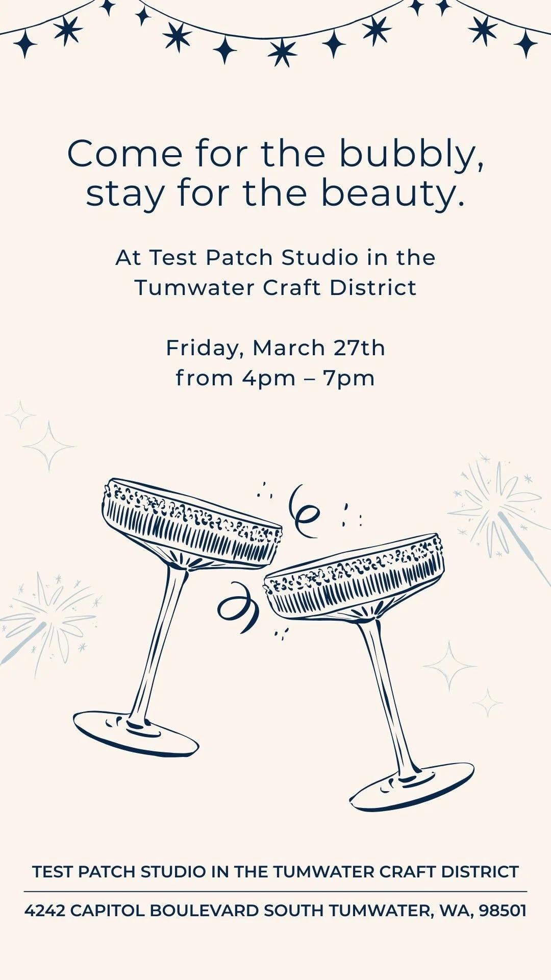 Join us for a delightful evening at Test Patch Studio. We’re pouring bubbly and serving snacks while Rainchain Adornments welds permanent jewelry just for you — dainty, clasp-free chains custom-fit just for you.
